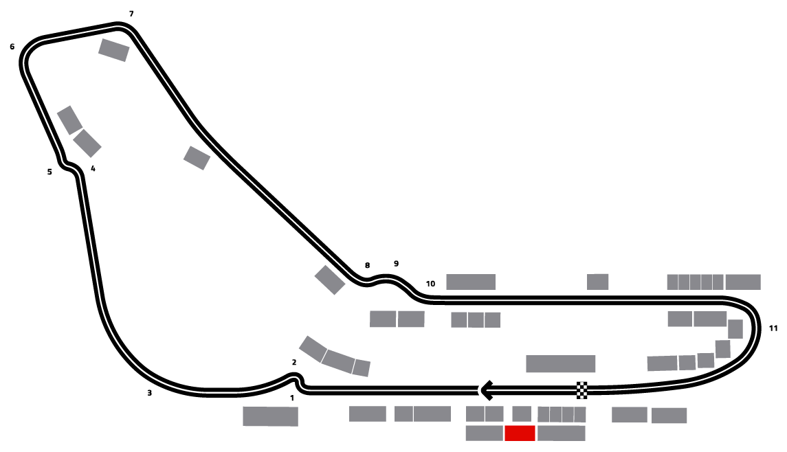 Located on the Main Straight opposite the Starting Grid with views of the F1® Team Garages, Finish Line and into the Pit Lane.