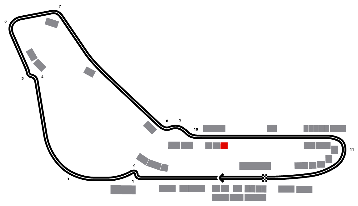 ドライバーがアスカリ コーナーを出て、ターン 11 に向かってストレートを加速するターン 10 の直後にあります。